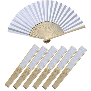 24ชิ้นต่อกล่อง36*21ซม. ไม้ไผ่สีขาวซี่โครงพัดกระดาษสำหรับงานแต่งงานของขวัญธุรกิจอุปกรณ์ประกอบฉากภาพวาด DIY